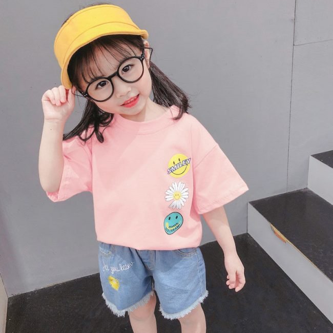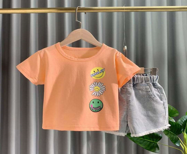 0-4 years attractive Summer Dress Cotton Shirt and Jeans Nikkar For Girls in Peach, Black and Pink Color
