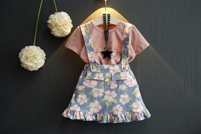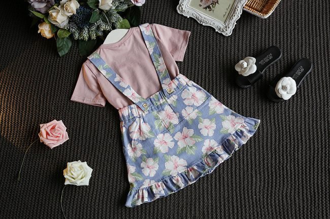 • Design: Korean style outfit with playful watermelon T-shirt & floral suspender skirt.