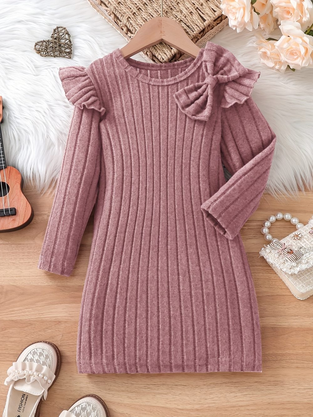 Discover the perfect blend of style and comfort with this elegant girls’ ribbed dress. Featuring long ruffle sleeves and a charming bow detail, it’s designed for spring and fall wear. Ideal for dinner parties, family gatherings, or as a thoughtful gift for your little one. A must-have addition to her wardrobe!