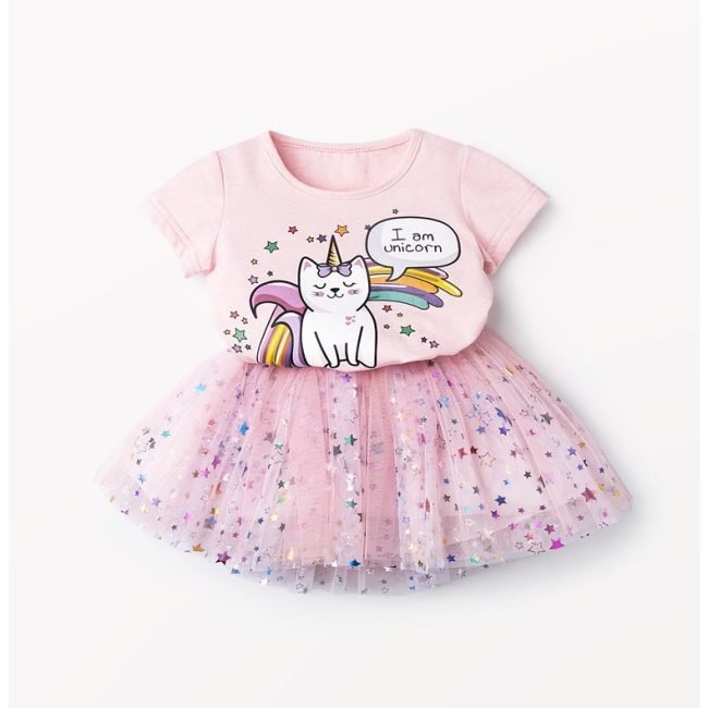 Be the first to review “unicorn printing top plus mesh star tutu skirt two-piece dress”